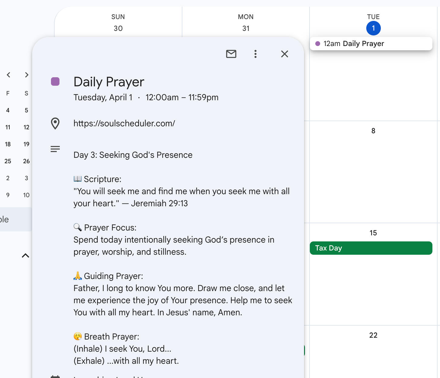 Soul Scheduler joins you where you already are, right in your calendar. Apple, Google, and Outlook calendars + more.